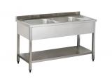 Paslanmaz Çelik Çift Evyeli Çalışma Tezgahı Taban Raflı 130x60x85cm