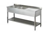 Stainless Steel Çift Evyeli Çalışma Counterı Taban Shelflı 150x60x85cm